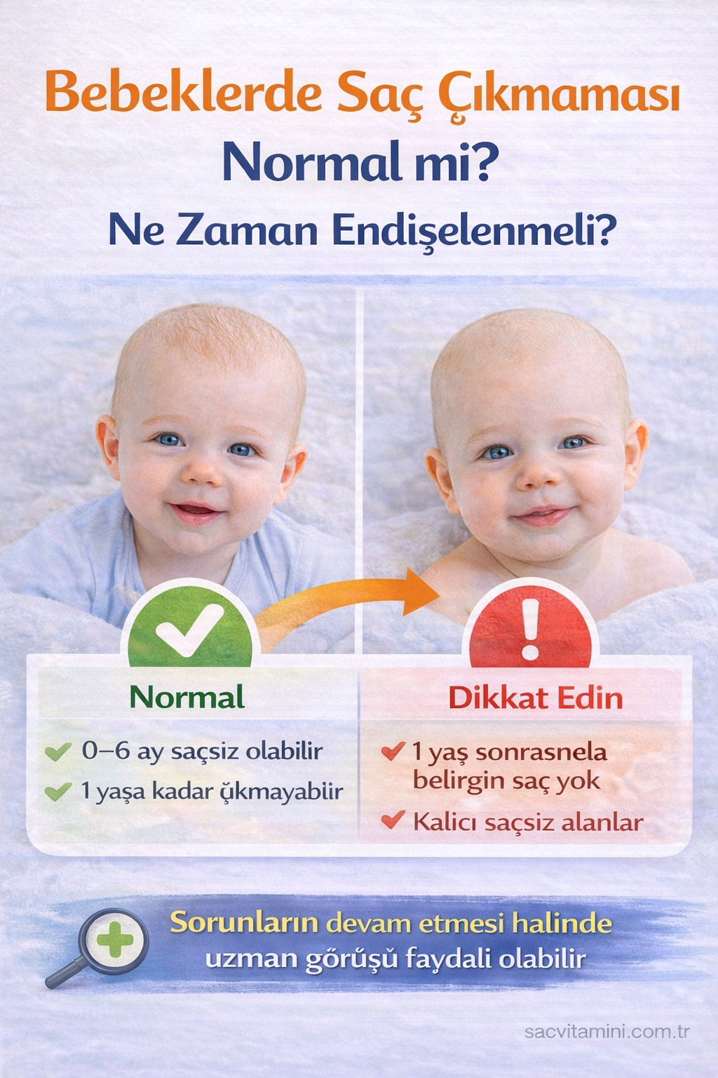 çoğu zaman normal kabul edilir. Bazı bebeklerde saç gelişimi 1 yaş sonrasında hızlanabilir.