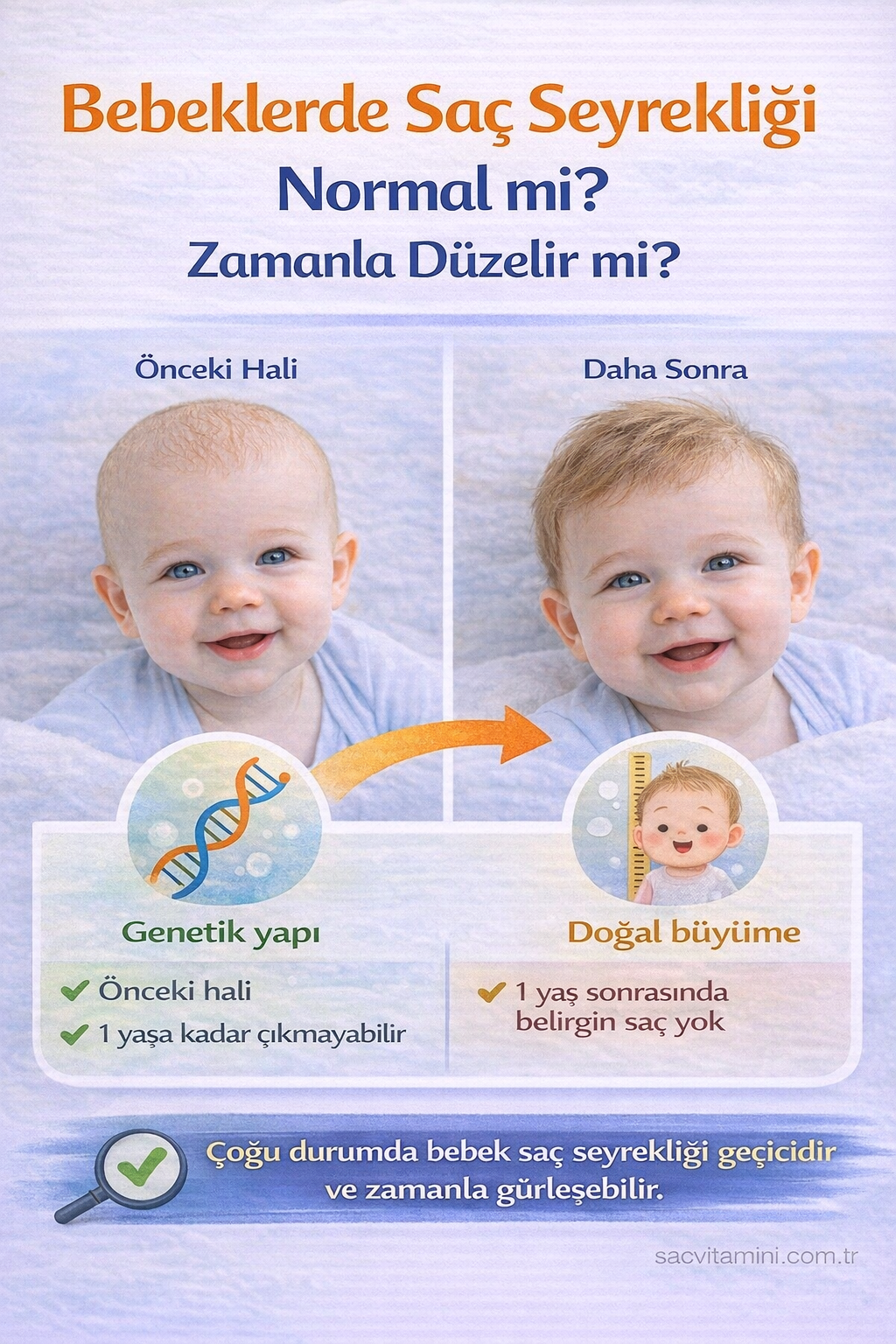Saç yoğunluğu zamanla artabilir ve her bebekte farklı hızda gelişir. Endişe edilen durumlarda uzman görüşü almak en doğru yaklaşımdır.